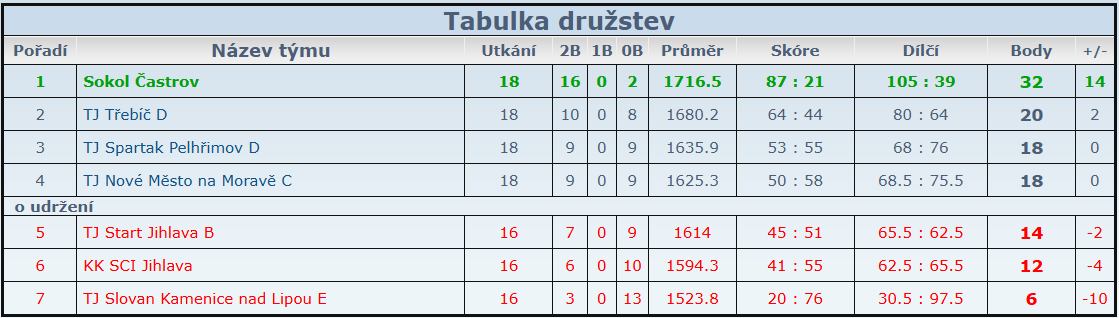Konečná tabulka umístění: