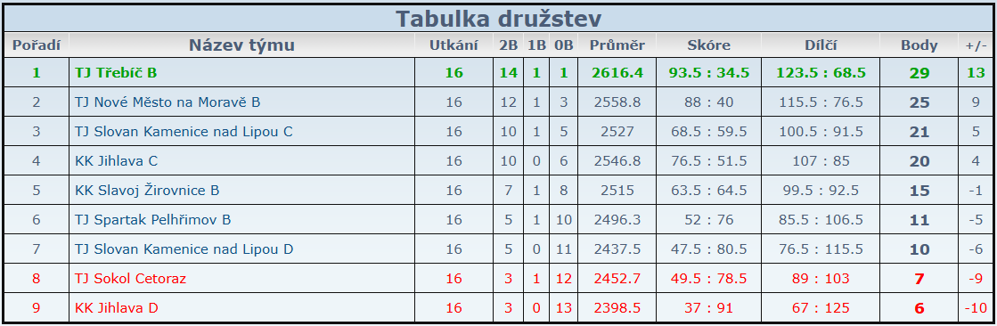 Konečná tabulka umístění: